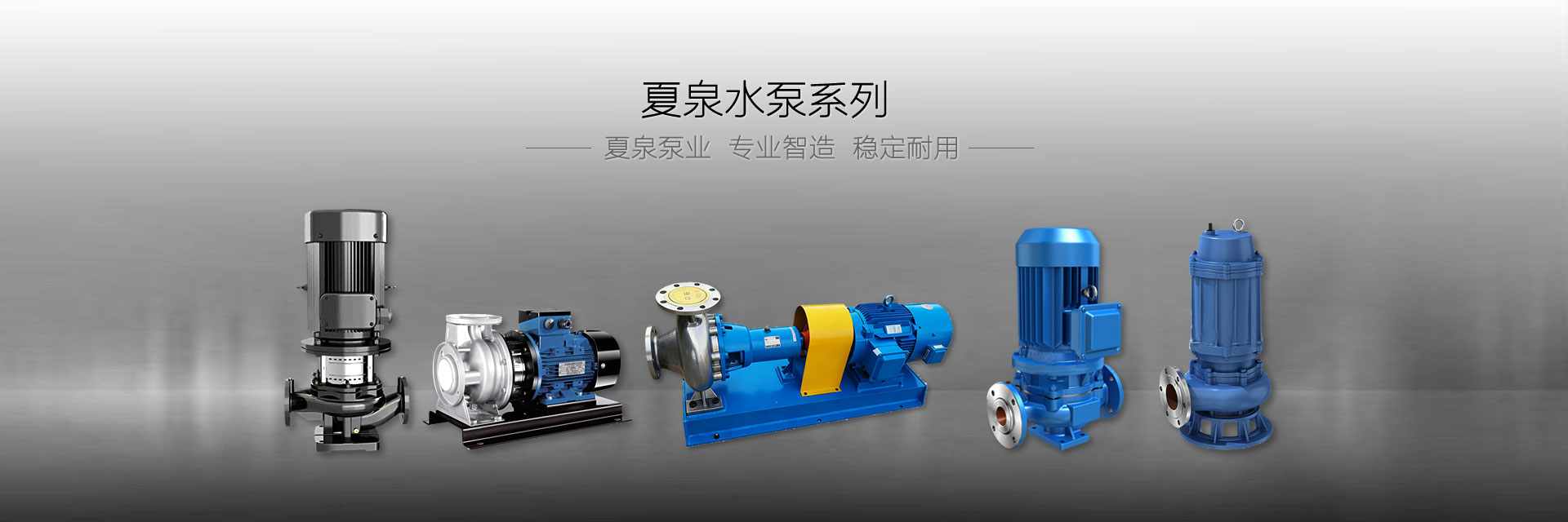 夏泉泵业公司生产的产品具有高效节能、绿色环保、安全可靠、性能稳定、使用方便之特点主要产品:离心泵、自吸泵、排污泵、潜水泵、隔膜泵、螺杆泵等。